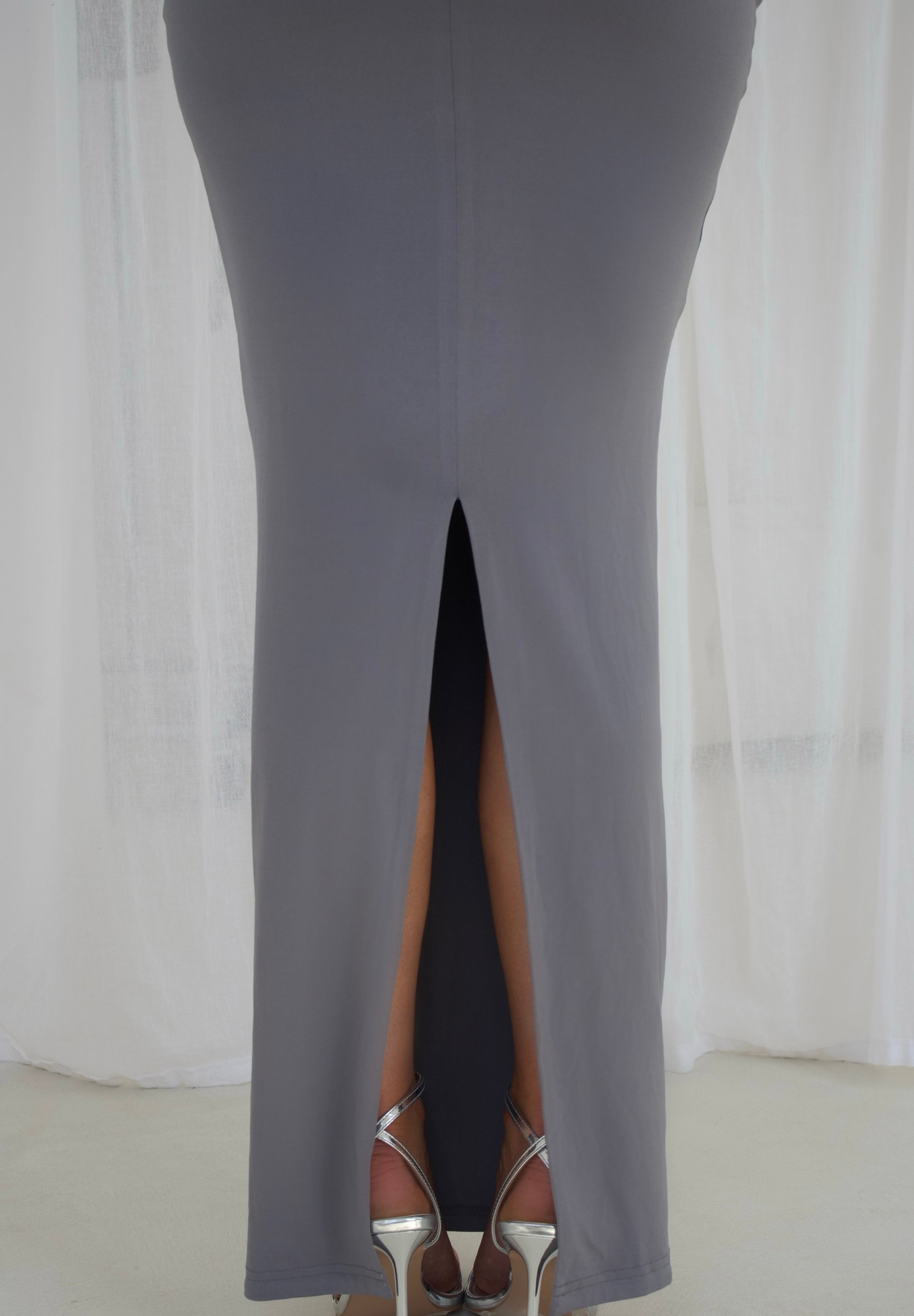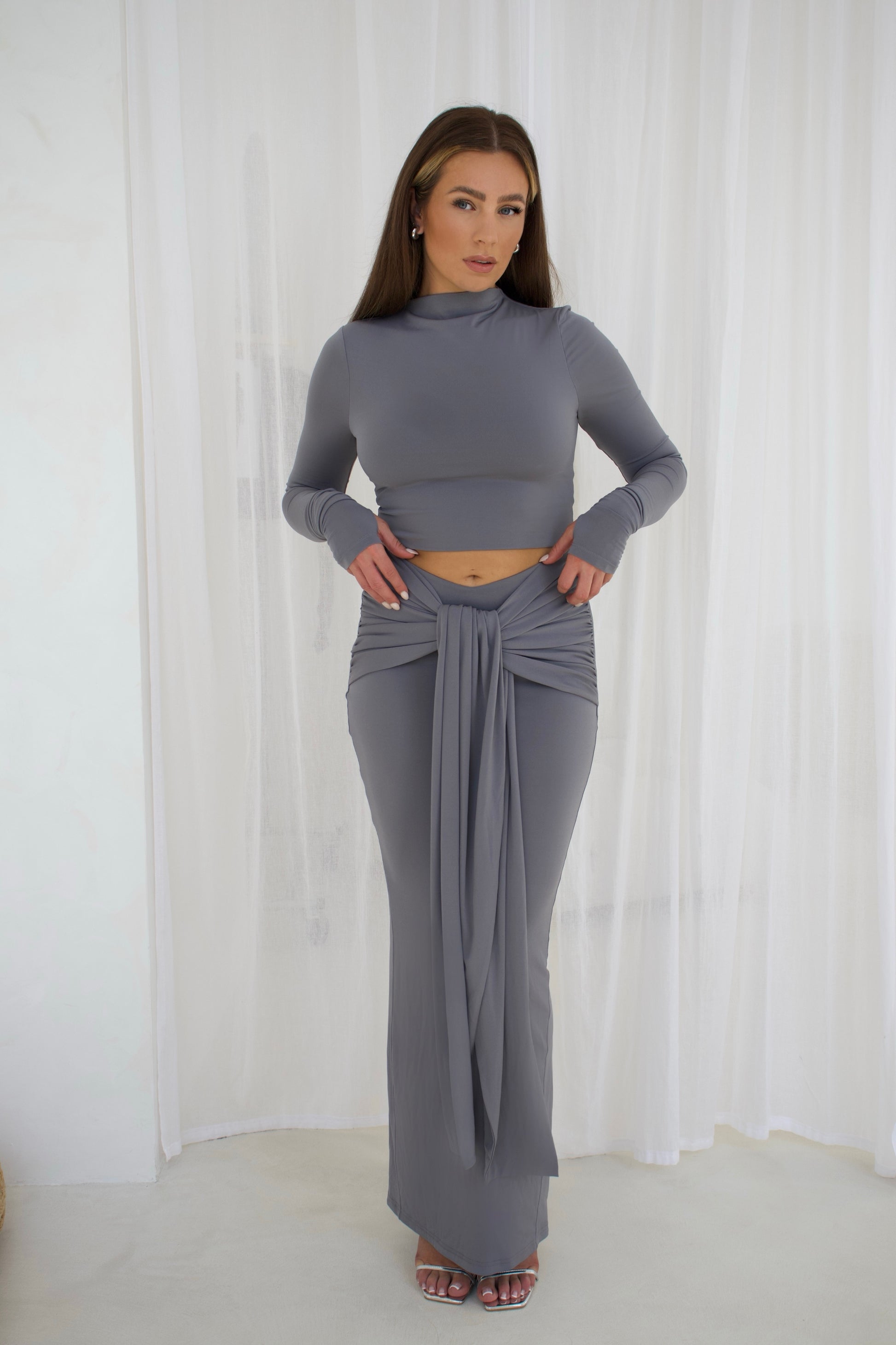 ‘Maya’ Tie Front Draped Maxi Skirt - Grey