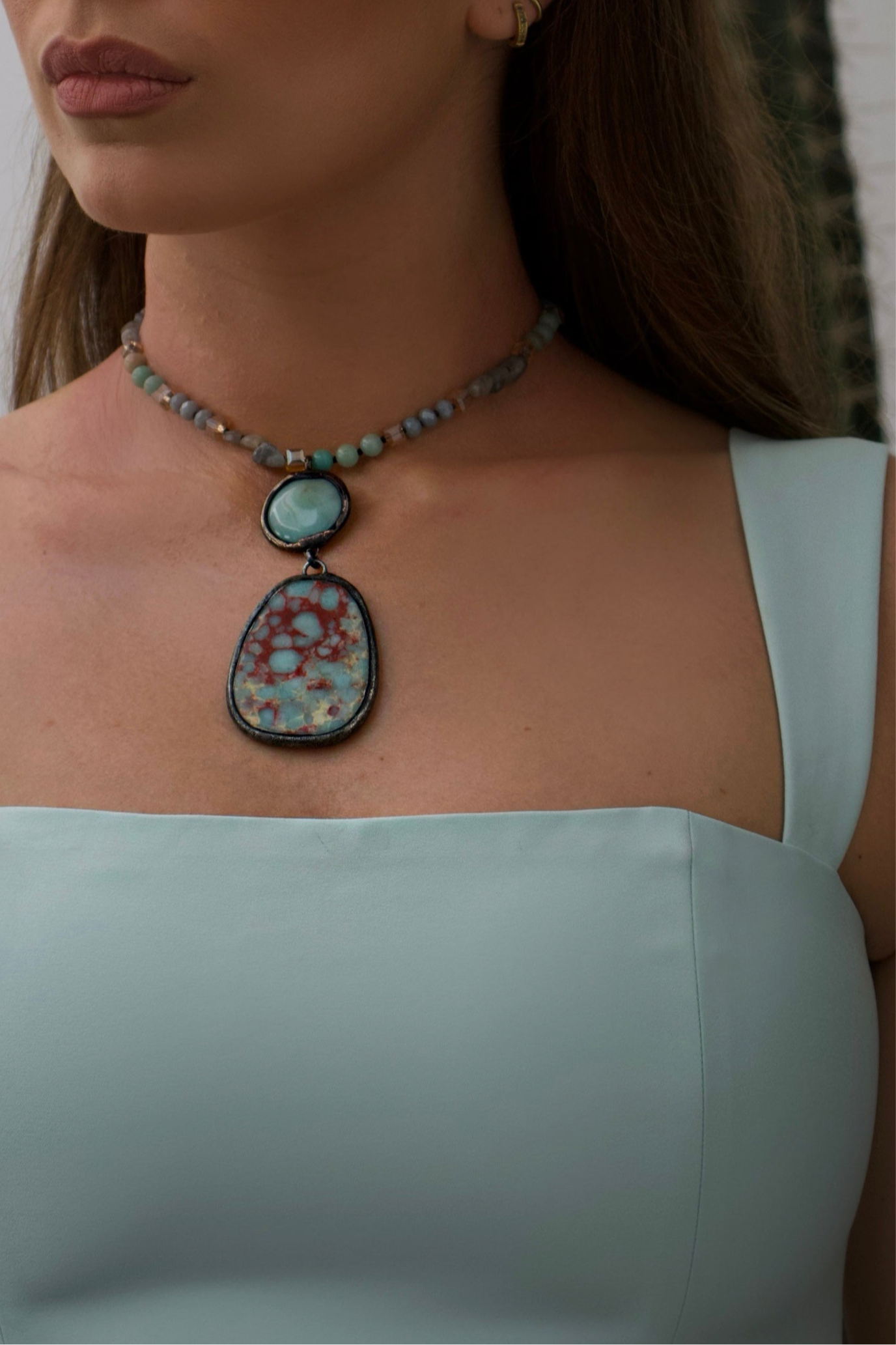 'Amina' 3-in-1 Square Neck Mesh Dress - Sky Blue
